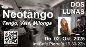 DOS LUNAS: Neo-Tango Milonga zum Tanzen und Zuhören 2. Oktober 2025, 19:30 im Pierre’s Graz Read More »